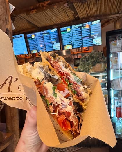 Local slang for "snack", A' Marenna is a small bistrot run by two women from Naples and Puglia that specializes in sandwiches made with the best Neapolitan and Puglian ingredients. 'Try: the "panuozzo" Leonardo with mortadella, pistachio cream, and Apulian stracciatella. Where: Via Tasso, 23 Phone: +39 081 1849 5183